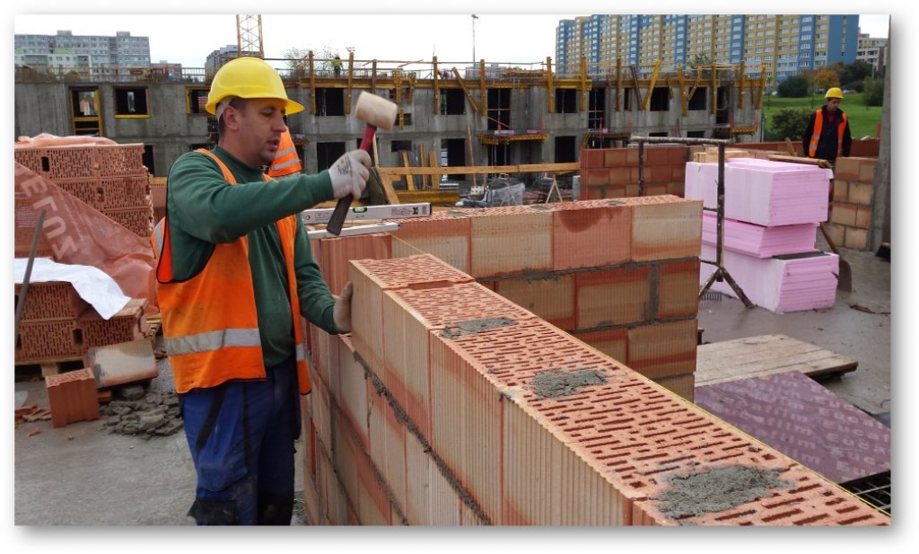 HELUZ ověřil funkčnost řešení na bytovém domě se stěnami z jednovrstvého zdiva HELUZ FAMILY 44 a železobetonovým stropem tloušťky 250 mm. Mezibytové stěny byly provedeny z cihel HELUZ AKU 30 MK, vnitřní akustické příčky z cihel HELUZ AKU 11,5. Zdění probíhalo na běžnou maltu.