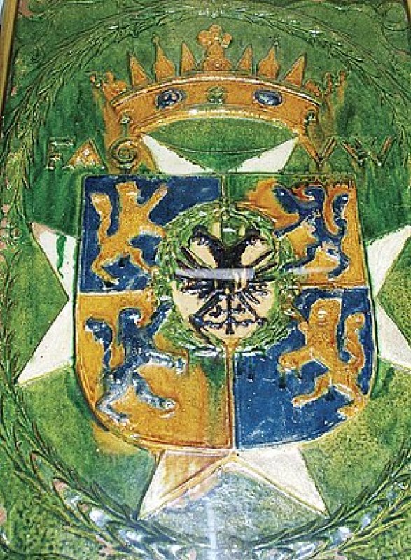 Po schodišti, na jehož stěnách jsou fotografie předsedů Senátu první republiky a všech tří předsedů od obnovení Senátu, tj. P. Pitharta, L. Benešové a současného předsedy P. Sobotky (obr. 6), se sešlo do Mytologické chodby, opět zdobené četnými freskami, ve které bylo vystaveno několik předmětů dochovaných z Valdštejnovy doby, např. kachle s Valdštejnským erbem (obr. 7), zbraně či drobný nábytek.