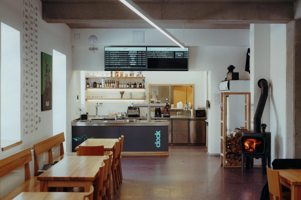 Ani Spojovna nedostala svůj název jen tak náhodou – moderní pražský pivovar, který se nachází na pomezí 3 pražských čtvrtí, navštěvují univerzitní studenti, lidé z nedalekého administrativního komplexu, ale i obyvatelé sídliště. Možná vás tedy asi nepřekvapí, že místní piva, která zde vaří poctivým způsobem jen z vody, chmele a sladu, nesou originální názvy: Študák, Fešák a Kravaťák. Součástí areálu je kromě budovy s minipivovarem také restaurace a velká zahrada s venkovním výčepem a různými sportovními a kulturními aktivitami. Za projektem, dokončeným v roce 2018, stojí zakladatel a majitel developerské skupiny RODOP Martin Kulík a za inovativním návrhem pražský ateliér mar.s architects. Interiérem podniku ladně prostupují jednoduché kresby od ateliéru Dynamo Design. Kufříky, kravaty a učebnice najdete doslova na každé zdi. Srdcem Spojovny je betonový výčep s dominantními kulatými svítidly z mléčného skla od českého výrobce Osmont [4,5].