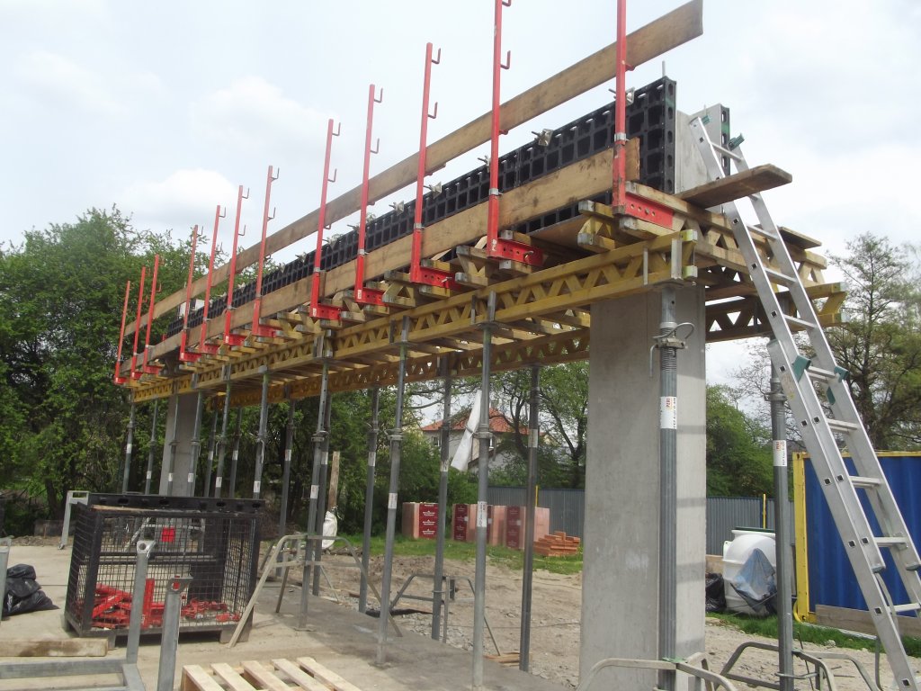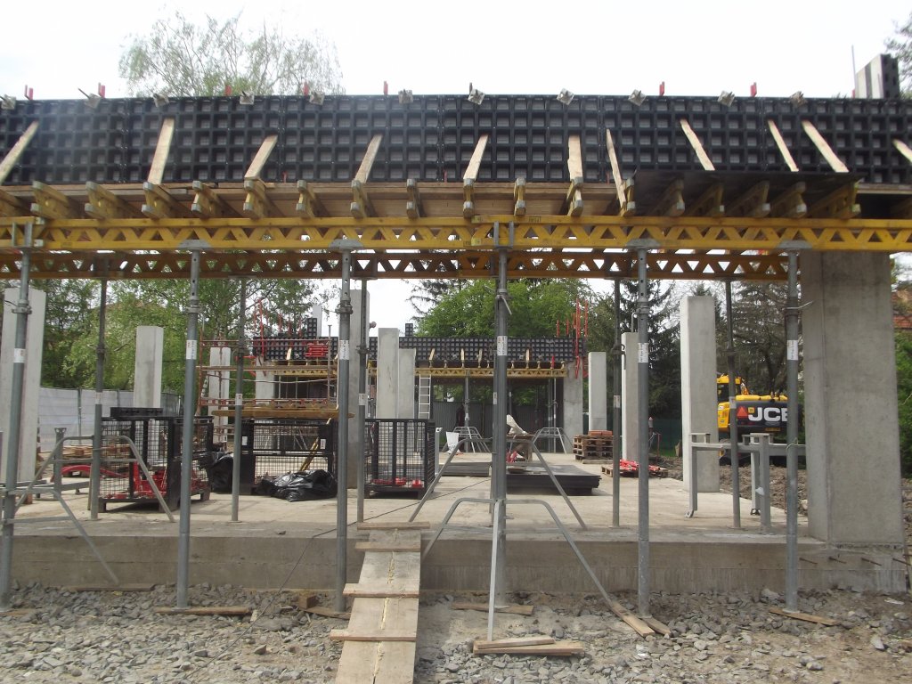 Dělníci firmy Rekomont, a. s., z Prahy Hloubětína, pod vedením stavebního mistra Petra Kolaříka, prováděli zemní práce, stavěli dvě obvodové stěny s obložením modřínovými prkny, pokládali litý pohledový beton s armaturou a další náležitosti tak, aby v průběhu léta byla stavba dokončena tzv. na klíč.
