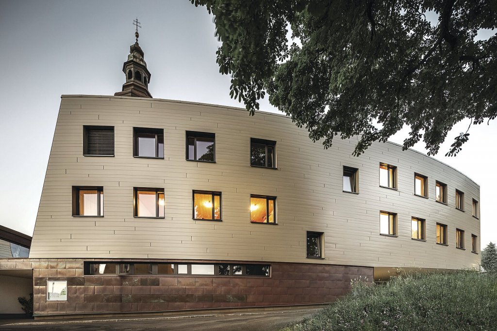 Studentská kolej Collegium Jacobinum na faře ve štýrském Leobenu není největším projektem architektonické kanceláře Wernera Nussmüllera, ale díky noblesní bronzové fasádě z fasádních lamel Siding patří mezi jedny z jejích nejpřitažlivějších a nejoblíbenějších.