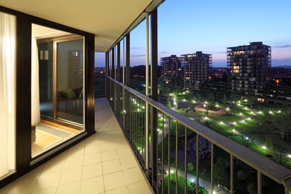Každá rezidence má i svoji vlastní terasu, která se rozprostírá po celém vnějším obvodu a opticky propojuje interiér s exteriérem. Nejenže po ní lze obejít byt z jednoho konce na druhý, ale v případě hezkého počasí si na ní lze vychutnat i ranní snídani či večení posezení s přáteli. Konce teras jsou opatřeny vnějšími žaluziemi. Jejich zatažení umožňuje obyvatelům rezidence ochranu před slunečními paprsky či zvýšení soukromí, aniž by si museli odepřít pobyt vně bytu.