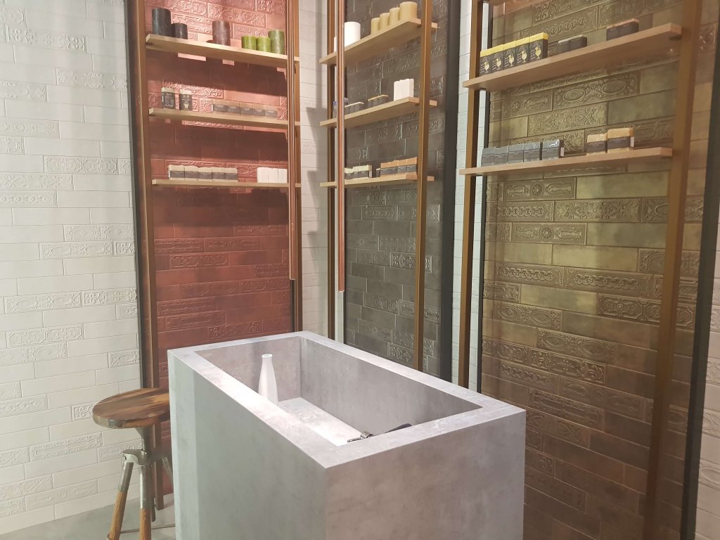 Další netradiční variantou obkladu, která patří k novinkám, je design zkorodovaného plechu. Ačkoliv se podobné realizace objevily na veletrzích již v minulosti, pro příští rok budou k dispozici i vzory v petrolejové, tmavě modré, zelené a cihlové barvě. „U těchto obkladů a dlažeb platí, že čím větší formát mají, tím víc na nich vyniká kresba, a to neplatí jen pro vzor kovu, ale i pro imitaci mramoru, dřeva nebo betonu. Na obkladech malého formátu design přírodních materiálů neoslní zdaleka tolik jako na formátu velkém. Proto doporučujeme rozměry alespoň 90x90 cm nebo 60x120 cm, největší možné provedení pak dosahuje rozměrů až 160x320cm,“ doplnil Martin Bezděk.