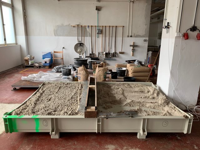 Požadavkem na beton byla vysoká pevnost, odolnost vůči cyklickému namáhání mrazem, bílá barva, samozhutnitelná konzistence a jemná kompaktní struktura, jež by dokonale obtiskla reliéf v písku. Byla tedy vyvinuta receptura betonu na míru z řady COLORCRETE o pevnosti C40/50 XF4, konzistence SF2 o maximálním zrnu kameniva 8 milimetrů.