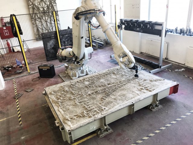 Do hlavních modelovacích pohybů jsou dále vloženy příkazy pro automatickou výměnu nástrojů, jichž má robot pět, a každý z nich slouží k vytvoření odlišných typů reliéfu.