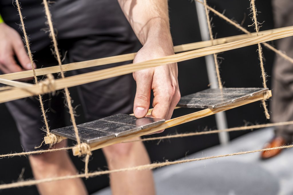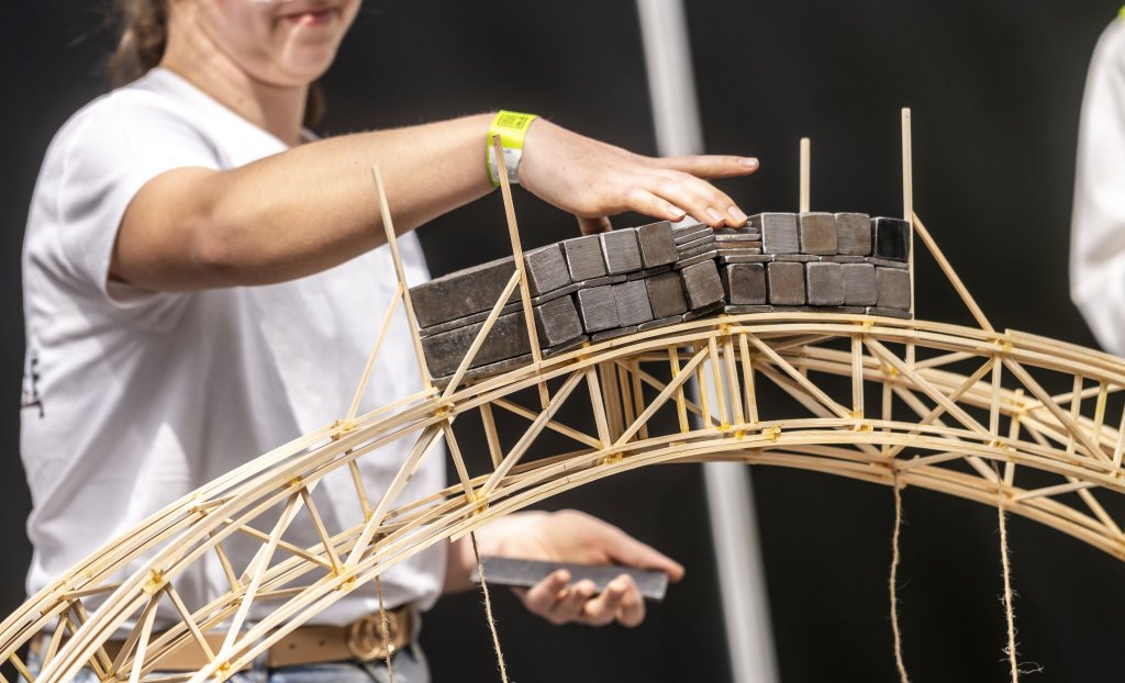 Při zatěžovací zkoušce se na model postupně pokládají závaží, dokud se konstrukce nezhroutí. Studenti tak mohou analyzovat slabá místa svého návrhu.