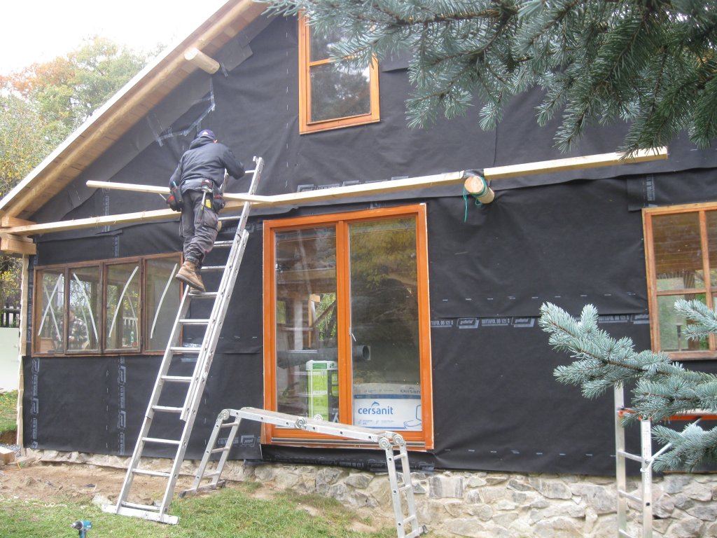 Většinu stavebních prací si majitelé zajistili svépomocí a s pomocí přátel. „Stavěli jsme svépomocně s řemeslníky nebo brigádníky. Hlavní stavbyvedoucí byl povoláním stavař a největší “profík“ na stavbě. Měl k ruce dle potřeby dva až tři brigádníky, dům dokončovali tesař, kamnář a klempíř. Sem tam nám přišli pomoci kamarádi a přátelé, na stavbě jsme také pořádali dvě akce, kde se rádi sešli zájemci o podobné stavění a pomohli s drobnými pracemi. Každý týden se pečlivě vyúčtovávaly náklady a dělal plán na další týden,“ upřesňuje majitelka.