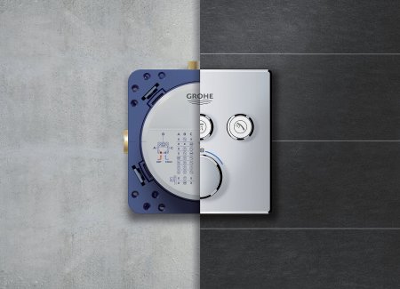 Klíčovou součástí každé podomítkové vodovodní baterie je co nejpraktičtější podomítkové těleso. GROHE proto vyvinulo univerzální podomítkové těleso GROHE Rapido SmartBox,při jehož návrhu se odborníci zaměřili kromě nadčasového designu také na maximální praktičnost. Výsledkem je komplexní podomítková souprava GROHE Rapido SmartBox. Je kompatibilní se všemi bateriemi a umožňuje vysoce efektivní zapojení až tří sprchových funkcí. Díky tomu přináší doposud nevídanou flexibilitu, která instalatérům usnadní a urychlí práci. Všechny kompatibilní nástěnné panely navíc vystupují ze stěny jen o 43 mm, díky čemuž šetří místo ve sprše.