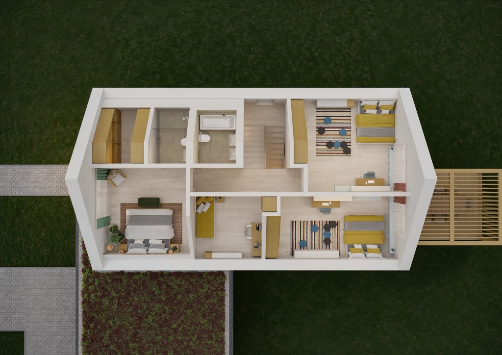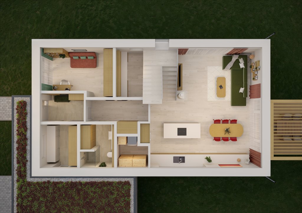 Smysluplné domy HELUZ jsou v nabídce společnosti od letošního roku a jedná se o projekty, které mají za cíl zjednodušit a urychlit cestu ke kvalitnímu a energeticky efektivnímu bydlení. Balík Smysluplného domu HELUZ obsahuje ucelenou projektovou a prováděcí dokumentaci, ale rovněž manuál pro výstavbu, návrh interiéru a nákupní seznam všech použitých položek. „To pro nás představovalo obrovskou úsporu času, nemuseli jsme náš dům měsíce plánovat,“ přibližuje paní Nikola jednu z hlavních výhod konceptu Smysluplných domů, která je oslovila. Společně s tím ale řadí na první místa rovněž vzhled a dispoziční řešení. „Vzhled domu nás zaujal na první dobrou. Přáli jsme si moderní dům, který citlivě zapadne do okolní zástavby. Naprosto zásadní pro nás byla rovněž dispozice domu. Když jsme hledali projekt, viděli jsme spoustu hezkých návrhů, ale dispozice vždycky měla nějaké nedostatky. Až v případě domu SPACE jsme byli naprosto spokojeni. Je pojatý přesně tak, jak jsme o domě uvažovali od počátku,“ vysvětluje Nikola. „Usnadnilo nám to práci také v tom, že jsme získali dokumentaci, se kterou nebude problém z hlediska tuzemské legislativy,“ doplňuje Tomáš.