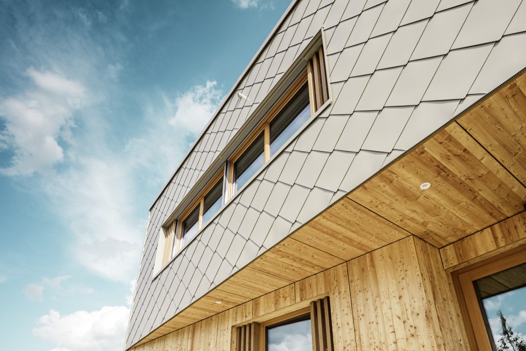 - Typ fasádní krytiny: PREFA fasádní šablona 44 × 44, PREFALZ