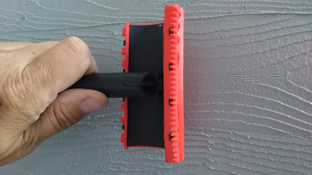 Ihned po nanesení druhé vrstvy omítky provedeme klíčové strukturování povrchu pomocí fládrovacího podvalku. Posunem podvalku po omítce při jeho současném naklápění docílíme požadované struktury dřeva. Fládrovací podvalek je nutné během práce průběžně čistit od přebytečné omítky.