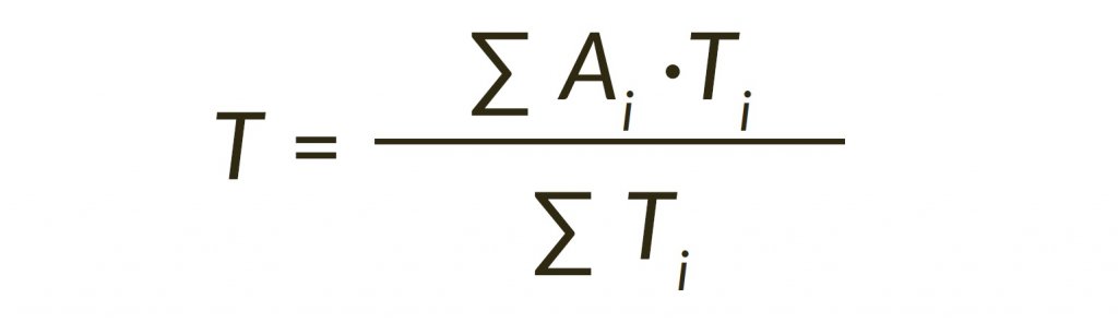 Na téma tepelné pohody, přesněji toho, kdy ji cítíme a proč, existuje poučka, že je to stav, kdy součet teploty stěn a vzduchu je cca 40 °C. Fyzikální pohled ale říká, že teplota vzduchu je vždy odvozená z teplot stěn s výjimkou případu, že je v místnosti průvan. Známe-li tedy teplotu T a plochu A všech stěn, včetně podlahy a stropu, pak jejich průměrná teplota, vážená podle ploch, je: