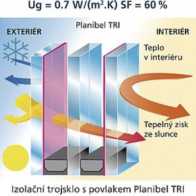 Již dávno pryč jsou doby, kdy se v souvislosti s tepelnou izolací mluvilo pouze o izolačním dvojskle. V současnosti se pro snížení spotřeby energie na vytápění budov začínají ve velké míře prosazovat izolační trojskla. Ano, právě jedna tabule skla navíc dokáže snížit hodnotu Ug až na 0,5 W/(m2.K)!
