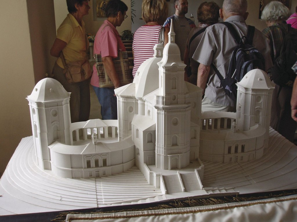 Během let se množily záznamy o zázračných uzdraveních, původní kostel ani druhý postavený v 15. stol. nestačily zástupům poutníků a bylo třeba problém řešit. Peníze na stavbu nového chrámu věnovala majitelka boskovického panství jako dík za uzdravení své i svého manžela. Plány na novou kněžskou rezidenci i nový kostel vypracoval Santini a od r. 1712 se začala stavět nová rezidence a poté i kostel. Stavba se protahovala, kostel byl dokončen až r. 1744, tedy 21 let po smrti Santiniho (obr. 8).