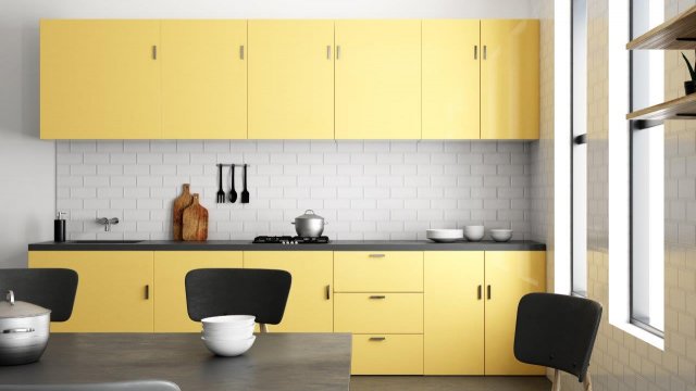 Žlutá vůbec není staromódní, právě naopak. V posledních letech se k ní designéři s oblibou vracejí. Žluté odstíny jsou univerzální, a proto se hodí do každého stylu. Pokud je navíc kuchyň prostorově menší, žlutá ji dokonale prozáří, a tím místnost opticky zvětší. Žlutá skvěle ladí s bílou, hnědou, černou, ale i modrou. Z materiálů ji nejlépe doplní dřevo či kov.
