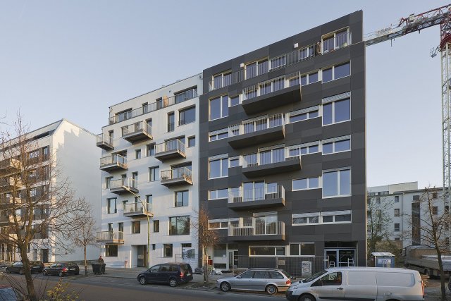 V roce 2012 zrealizovali v Berlíně architekti ze studia Kaden Klingbeil stavbu dvou nových sedmipatrových bytových domů. Průčelí obytných domů bylo zhotoveno z prvků dřevěné rámové konstrukce. Použití dřeva u tak vysokých bytových domů (podlaha nejvyššího patra je téměř 20 metrů nad úrovní terénu) bylo možné díky obložení sádrovláknitými deskami fermacell s účinnou požární ochranou.