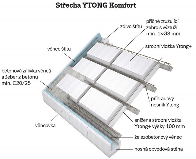 Snazší práce, rychlá výstavba a výhody masivních konstrukcí: tiché a klidné bydlení, v létě příjemný chládek, v zimě teplo. Odpadá nadbetonávka s výztužnou sítí KARI. To jsou přednosti systému YTONG Ekonom pro strop a YTONG Komfort pro střechu. Oba se pokládají stejně, střecha má sklon až do 40°. Jsou vhodné i pro „téměř nulové“ domy nebo pasivní podle programu ZÚ II.