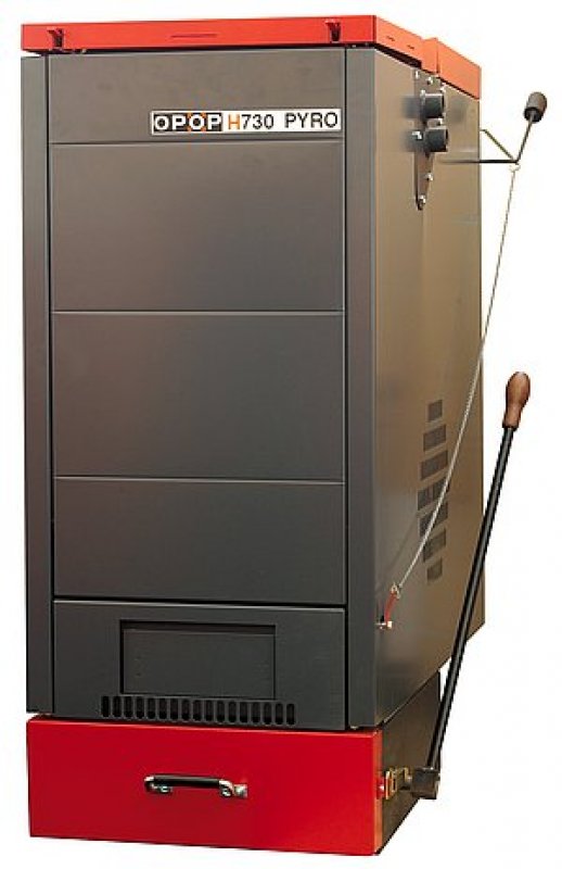 Do skupiny ekologických kotlů se jistě dá zařadit i další výrobek firmy OPOP. Je jím pyrolytický kotel H730, který byl poprvé představen v listopadu roku 2004 na pražské výstavě Aquatherm. Záručním palivem jsou pelety o průměru 16 - 20 mm nebo hnědé uhlí ořech 1. Při topení peletami dosahuje kotel jmenovitého výkonu 31 kW a při topení uhlím 35 kW. Kotel spaluje palivo na principu katalyticko-pyrolytickém, což znamená, že plyny vznikající při prvotním nedokonalém spálení paliva na roštech jsou vháněny přes trubky difuzorního typu do spalovací komory. Tato je vystlaná šamotovými tvarovkami. Zde dochází ke vznícení plynů a za pomoci přívodu sekundárního vzduchu se tyto plyny spálí při teplotě vyšší než 1 000 °C. Tímto způsobem spalování dosahuje kotel účinnosti 84 - 86 %. Přednostmi tohoto kotle jsou vysoká účinnost, snadná údržba (2 x za sezónu) a provoz i bez elektrické energie a ventilátoru.