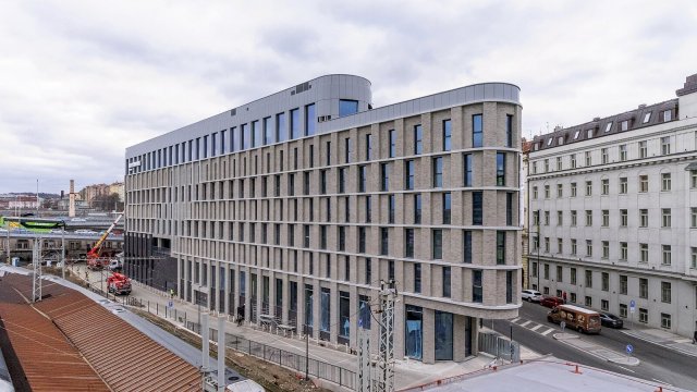 Hotel se světlou fasádou z cihelných pásků Terca se stal novou dominantou pražské křižovatky U Bulhara. Návrh objektu je z dílny architektonického studia Schindler Seko Architekti, investorem projektu je developerská společnost Penta Real Estate.