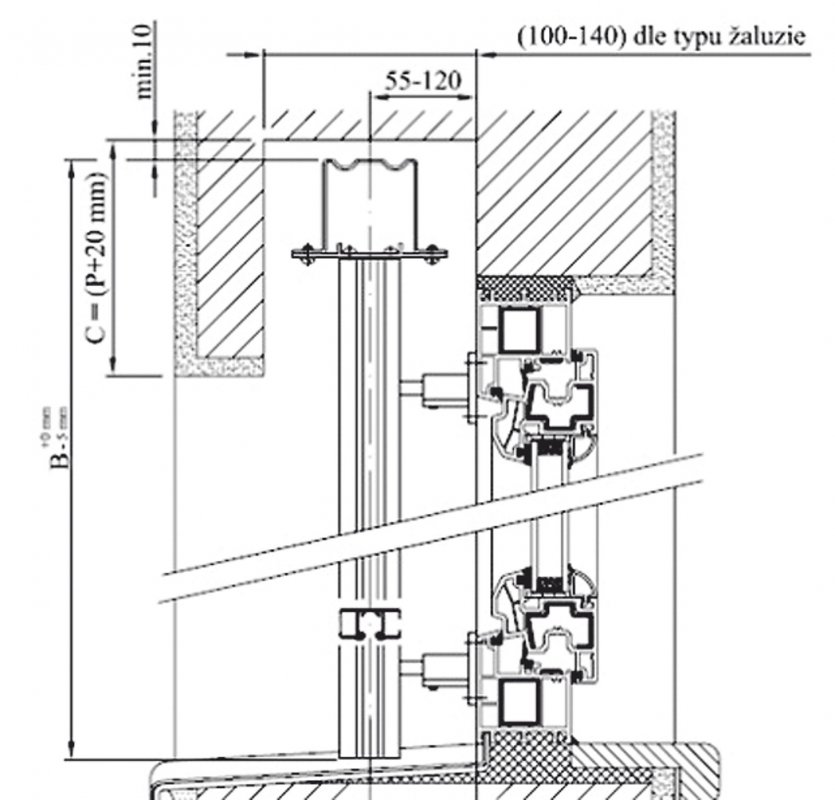 Venkovní žaluzii můžete instalovat i před okenní otvor. Tento způsob montáže je vhodný i pro dodatečnou montáž. V případě, že se rozhodnete pro předokenní montáž, máte na výběr opět několik možností. Nejběžnější je využití krycího plechu (obr. 5), který překrývá horní část žaluzie a současně schová nábal stažené žaluzie. Při tomto způsobu instalace musíte brát v potaz, že vám horní krycí plech částečně ubere světlou výšku okna (výška krycího plechu je závislá na celkové výšce žaluzie).