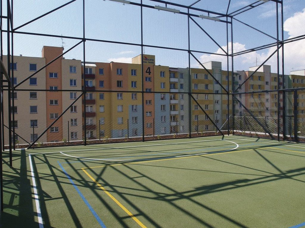 Pro zmíněný projekt bylo použito cca 1700 m2 nerezových sítí X-TEND®o velikosti oka MW120 při průměru lana 2 mm, které byly určeny pro zajištění proti pádu osob po téměř celém obvodu budovy a dále u všech schodišť v celém objektu. Tento typ sítí slouží jako bezpečnostní prvek bez nutnosti použití dalšího zábradlí. Uvedený typ sítí X-TEND® o velikosti oka 120 mm dosáhl značné vzdušnosti celé stavby při dodržení 100% bezpečnosti proti pádu osob. Uvedené sítě pro opláštění těchto tří pater budovy budou v budoucnu sloužit jako podpůrná konstrukce pro popínavou zeleň, která je osázena ze dvou stran budovy. Tato zeleň umožní uživatelům budovních prostor zcela přírodní zastínění, které ocení především v letních měsících. Za zmínku stojí také použití nerezové sítě X-TEND® na střeše budovy, kde se nachází otevřené multifunkční hřiště, dosahující výšky 2 metrů. V návrhu se počítalo s intenzivním využitím sítí při různých sportovních aktivitách. „Použili jsme nerezové sítě X-TEND® o velikosti oka MW40 při průměru lanka 2 mm. Velikost oka 40 mm zajišťuje zamezení průniku tenisového míčku na všudypřítomné okolní komunikace. Průměr lanka 2 mm plní funkci bezpečnostní, zamezuje poškození nerezových lan sítí i případnému pádu hráčů,” dodal David Pařízek.