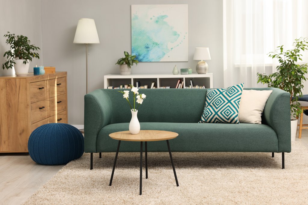Vybrat správnou barvu gauče může být větší dilema, než se na první pohled zdá. Šedá je univerzální klasika – hodí se ke všemu a nikdy nezklame. Pokud ale chcete držet krok s trendy, letos vedou olivově zelená, cihlová a terakotová. Tyto tóny vnesou do interiéru hřejivost a pocit útulna. Odvážnější z vás mohou sáhnout po inkoustově modré, která působí elegantně a noblesně. Velkou roli hraje i podlaha, na které bude pohovka stát. Na světlé dřevěné podlaze krásně vynikne tmavší sedačka, která vytvoří kontrast a dodá prostoru charakter. K tmavé podlaze se naopak lépe hodí světlejší pohovka, díky níž bude místnost působit vzdušněji.