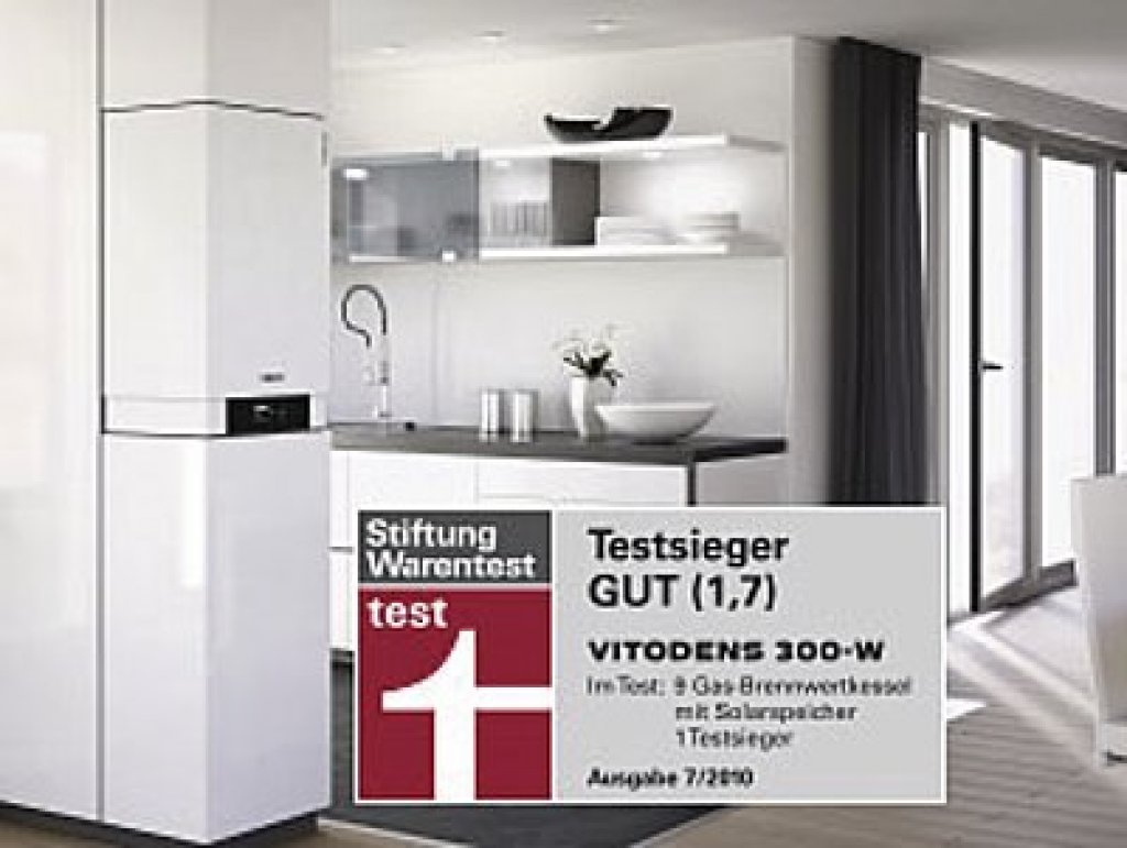 „Energii, která je obsažena v plynu, velmi efektivně přeměňuje na teplo pro vytápění. Spalování s velmi nízkým obsahem škodlivin. Velmi snadná obsluha. Pečlivé zpracování.“ – nástěnný plynový kondenzační kotel Vitodens 300-W sklidil u pracovníků nadace Stiftung Warentest samou chválu. Ve svém červencovém vydání časopisu „test“ se srovnávalo devět kombinací plynového nástěnného kotle a solárního zásobníku. Konečný verdikt: S celkovou známkou „dobrý“ (1,7) jsou kotle Vitodens 300-W a solární zásobník Vitocell 100-W jasnými vítězi testu.