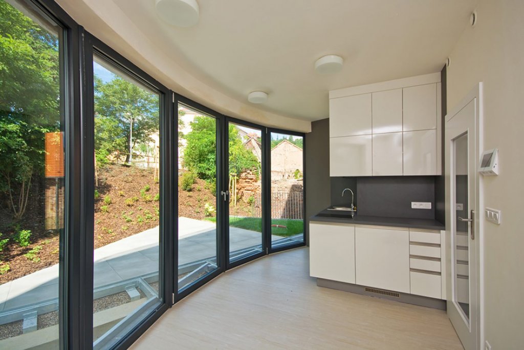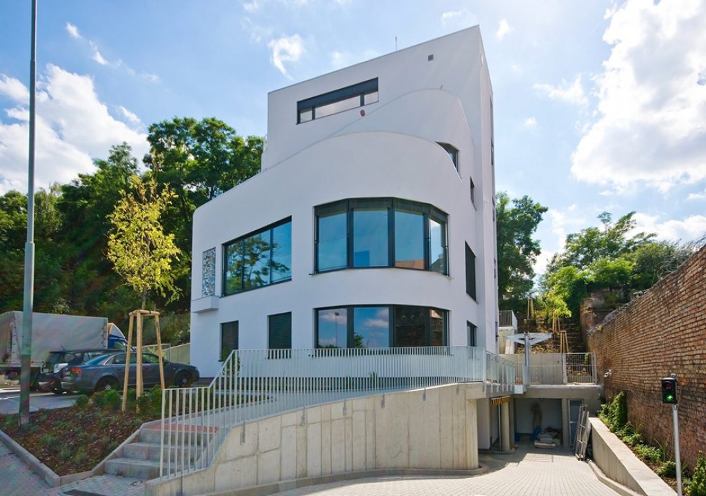 Kombinace prostorových a legislativních limitů stavebního pozemku a zadání v podstatě běžné stavby není pro Novou Koulku omezující. Nová Koulka se urbanisticky začleňuje do existující výstavby a pokračuje v logice do svahu umisťovaných solitérních staveb. Výstavbou nedochází k přetvoření terénu.