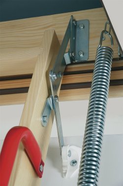 Během otevírání schodů vedou pohyb poklopu inovativní panty spojující žebřík se skříní. Žebřík se odsouvá od poklopu a umožňuje pohodlně položit chodidlo, což zvyšuje komfort užívání. Speciálně použité úchyty umožňují snadnou montáž a demontáž poklopu schodů. Díky nevelké hmotnosti (a inovativnímu způsobu uchycení poklopu na tzv. klik si s montáží schodů hravě poradí jedna osoba. Maximální nosnost půdních schodů je 160 kg.