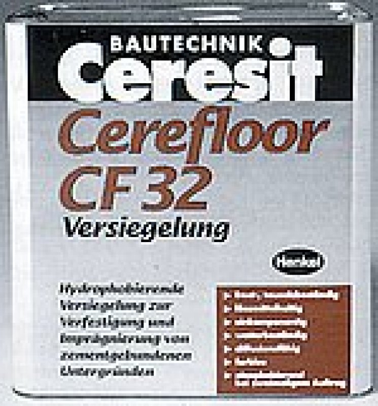 Ceresit CF 32 je hydrofobní bezbarvý jednosložkový nátěr pro zpevnění a impregnaci cementem vázaných podkladů. Je určen k nátěrům cementových mazanin, betonových výrobků, betonových podlah a omítek. Ceresit CF 32 je vhodný pouze pro nasákavé, otevřeně pórovité podklady. Nátěr je transparentní, viditelný v důsledku intenzifikace barevných tónů (nehodí se k utěsnění podlah nebo nádob proti chemikáliím). Využití najde pouze v exteriérech a průmyslové oblasti, jakými jsou např. skladovací haly, garáže, dílny, balkony atd. Zpevňující nátěr CF 32 obsahuje rozpouštědla, je odolný proti námraze a soli, paropropustný a při dvou nátěrech odolný vůči olejům.