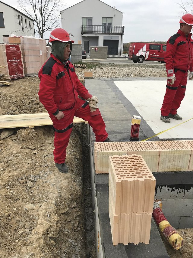 S manželi Vlčkovými a v přítomnosti jejich dvou malých všetečných dcer jsme krátce pohovořili. Pan Vlček je inženýrem ekonomie. Přesto, a nebo právě proto, popisoval cestu své rodiny k budoucímu vlastnímu rodinnému bydlení velmi zasvěceně. „Od začátku jsme chtěli cihelnou stavbu s vysokou tepelnou akumulací, tedy i teplotní setrvačností, ale bez dodatečného zateplení, které výstavbu zdržuje, nehledě na jeho kratší životnost.” Řekl, že firmu Wienerberger považuje za nejvyšší technologickou a produktovou špičku v oboru (cihly, pálená střešní krytina, lícové cihly a dlažby) nejen u nás, ale i ve světě. „Proto jsme k němu zašli a jsme rádi, že jsme obstáli i ve výběrovém řízení k projektu e4 a že náš dům postaví profesionálové pod kvalitním dozorem.”