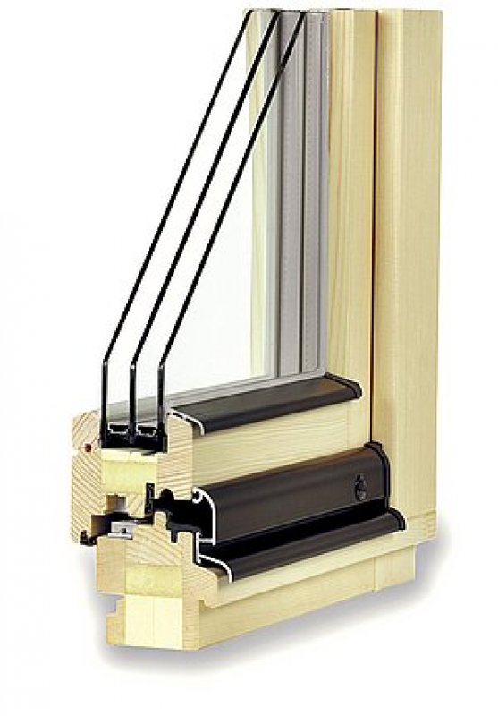 | Pohled na okna TTK komfort a TTK komfort plus zhotovená z lepeného dřevěného profilu jedinečné konstrukce o čtyřech vrstvách se vsazeným tepelně izolačním dvojsklem resp. trojsklem. | |