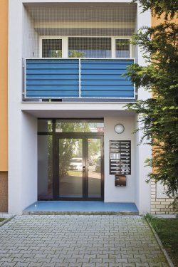 Vyměněna byla i veškerá zábradlí. Ta nová jsou opatřena žárovým zinkem a jejich výplně byly osazeny trapézovými plechy v atraktivní tmavě modré barvě. Pro sanaci podlah lodžií byl vybrán hydroizolační systém Schomburg.