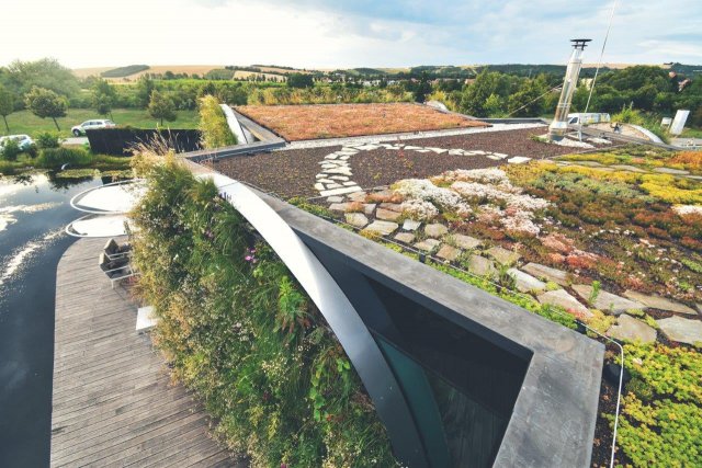 Dalším krokem vývoje, který nazýváme Návrat ke kořenům moderní cestou, je vlastní patentovaný systém střešních i fasádních kořenových čistíren odpadních vod. Ty umí zpracovat odpadní vodu produkovanou v objektu a pomocí kořenového systému ji proměnit zpět na vodu užitkovou, vhodnou pro provoz nebo například pro závlahový systém fasád a okolí.