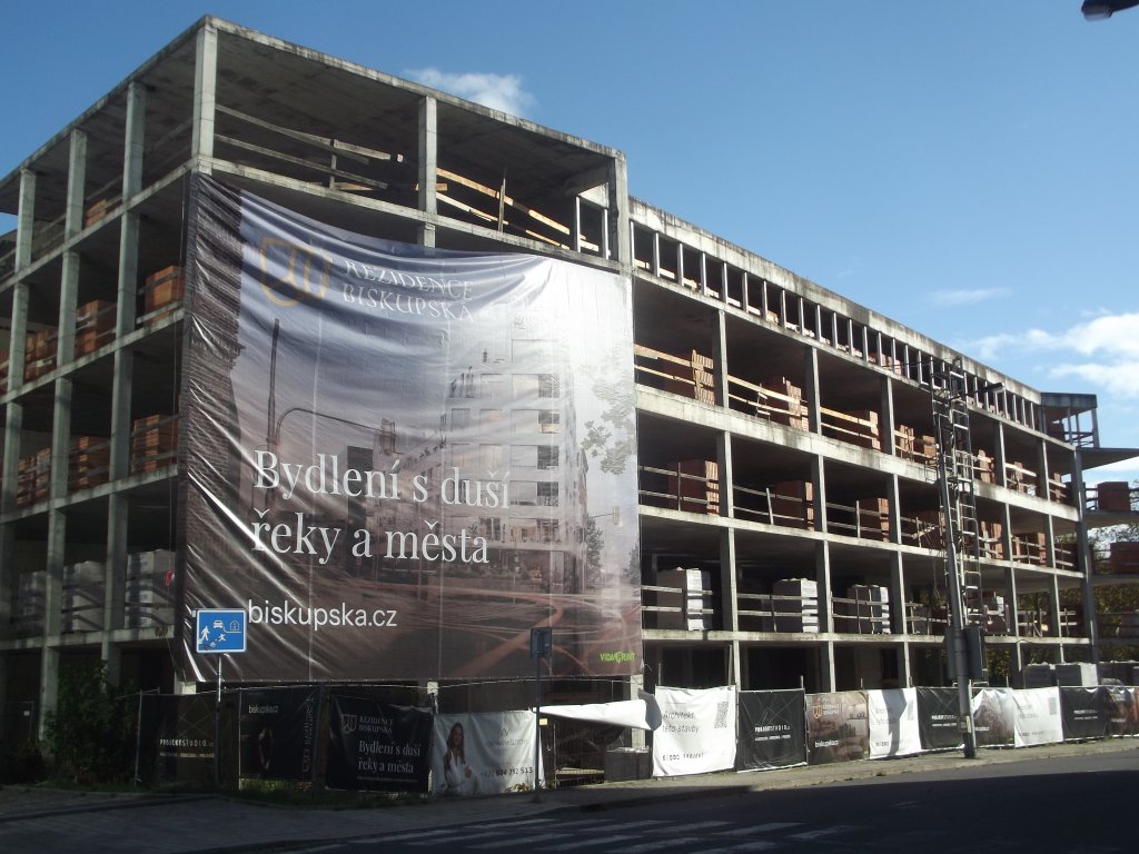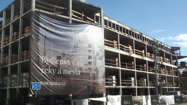 Naše návštěva koncem října letošního roku zaměřila objektiv na vrcholící práce na podzemních garážích, kde převažujícím materiálem je beton a železo. V konečném součtu se sem vejde 76 automobilů. Moderní budova pojmenovaná Václav bude dokončena roku 2027, v kontrastu s nejstarší zdejší historickou sakrální stavbou – zmíněným stejnojmenným kostelem.