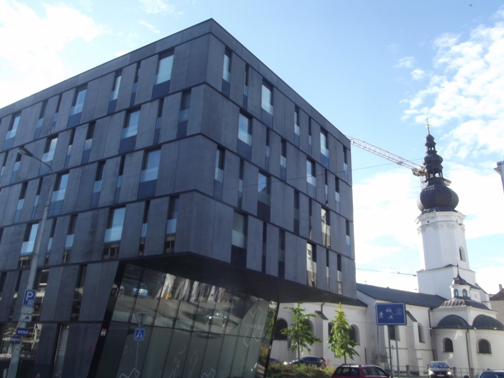 V linii od Masarykova náměstí po Havlíčkovo nábřeží stojí neméně moderní budova šedočerného zbarvení, taktéž s převažující skleněnou fasádou. Ta byla v sousedství václavského kostela postavena jako první ze zmiňovaných tří. Tou třetí je přes ulici konečně dostavující se skelet. Je součástí tzv. Malé Kodaně, v ulici Biskupská zasahující do náplavky levého břehu řeky Ostravice. Také zde budou součástí fasády velkoformátová okna, podzemní garáže, byty a komerční prostory. A dojde na použití dlouhodobě uskladněných cihelných výrobků KM Beta Hodonín.