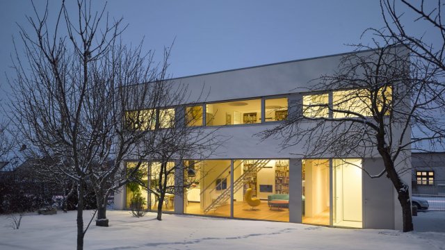 Hmotu rodinného domu v Červených Pečkách tvoří exaktní bílý nepodsklepený dvoupodlažní kvádr uzavřený do ulice, avšak maximálně otevřený do zahrady jihozápadní orientace. Dominantu interiéru domu tvoří knihovna prorůstající přes dvě podlaží s několika tisíci knihami a integrovaným krbem.