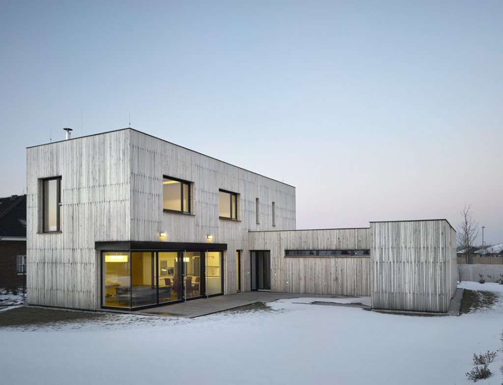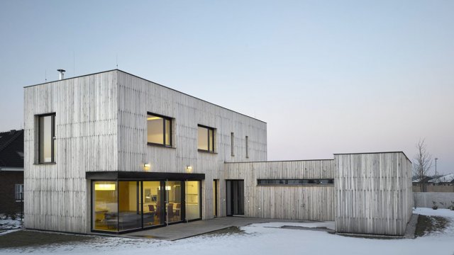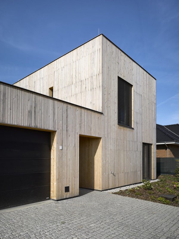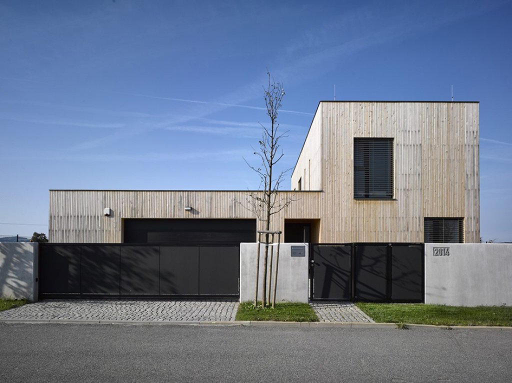 Dům má ve druhém podlaží obdélníkový půdorys s plochou střechou, v přízemí je pak rozšířen o garáž a sklad do tvaru „ L”, opět s plochou střechou. Dům je koncipován s maximálním důrazem na efektivní využití vnitřního prostoru. Konstrukce domu je tradiční s pálených cihel, fasáda je pak obložená smrkovými hranoly.
