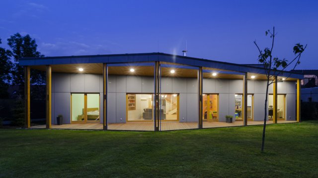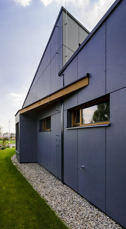 Zadání domu mělo bohatý program, naše teze byla vytvořit co nejkompaktnější objem z exteriéru, který je vnitřně diferencovaný a bohatý.
