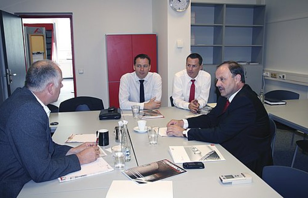 Před rozhovorem jsme se zajímali, jak funguje školicí centrum a showroom RotoKampus, které byly otevřeny před dvanácti měsíci a jejichž otevření jsme se zúčasnili1). Dozvěděli jsme se, že se zde konala již řada školení a za rok prostory využilo více než 850 účastníků z oblasti řemesel a obchodu. Následně jsme využili školicí místnost, kde proběhl velmi zajímavý rozhovor. Na otázky týkající postavení Rota ve světě odpovídal pan Christoph Hugenberg, člen představenstva koncernu Roto Frank AG a vedoucí divize DST – Střešní a solární technologie (Dach- und Solartechnologie). Otázky spojené v firmou Roto v ČR zodpověděl Stephan Hettwer, vedoucí platformy Jihovýchodní Evropa a pan Ing. Lubomír Kodad, country manažer pro Českou a Slovenskou republiku.