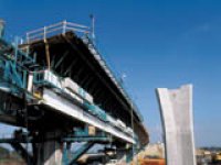 Další dvě estakády, přes trať ČD Olomouc – Prostějov (obj. 202) a přes řeku Moravu (obj. 204) zasluhují trochu více pozornosti vzhledem k neobvyklému tvaru jak nosné konstrukce, tak i spodní stavby. Pilíře objektu 202 mají příčný řez nepravidelného dvouose symetrického dvacetiúhelníku a sestávají ze spodní přímé části proměnné výšky a horní parabolicky se rozšiřující hlavice konstantní výšky. Pilíře objektu 204 mají vzhledem ke svému umístění v blízkosti koryta řeky Moravy proudnicový tvar příčného řezu, přičemž jsou sestaveny z hlavního monolitického zárodku s obkladovým prefabrikátem proudnicového tvaru na obou stranách ve směru proudu řeky. Mostovka obou mostů je tvořena spojitou železobetonovou předpjatou trámovou konstrukcí s parabolickými náběhy s rozpětím polí 42 – 45 m a je budovaná postupně po polích na výsuvné skruži, která se postupně vysouvá na konzolách umístěných pouze na definitivních pilířích bez nutnosti podpírání na terén. Společnost DOPRAVNÍ STAVBY HOLDING investovala do rozvoje této technologie nákupem nové výsuvné skruže od norské firmy NRS. V současné době se dokončuje levá polovina mostu a přestože složitý tvar nosné konstrukce budovaný společně s odvodňovacím žlabem velmi komplikuje postup výstavby, podařilo se docílit pracovního cyklu pro jedno pole v trvání 11 dnů. Zima stavební práce samozřejmě trochu přibrzdila, ale zkušení technici DOPRAVNÍCH STAVEB HOLDING jsou připraveni na pravém mostě zkrátit cyklus na 10 dnů.