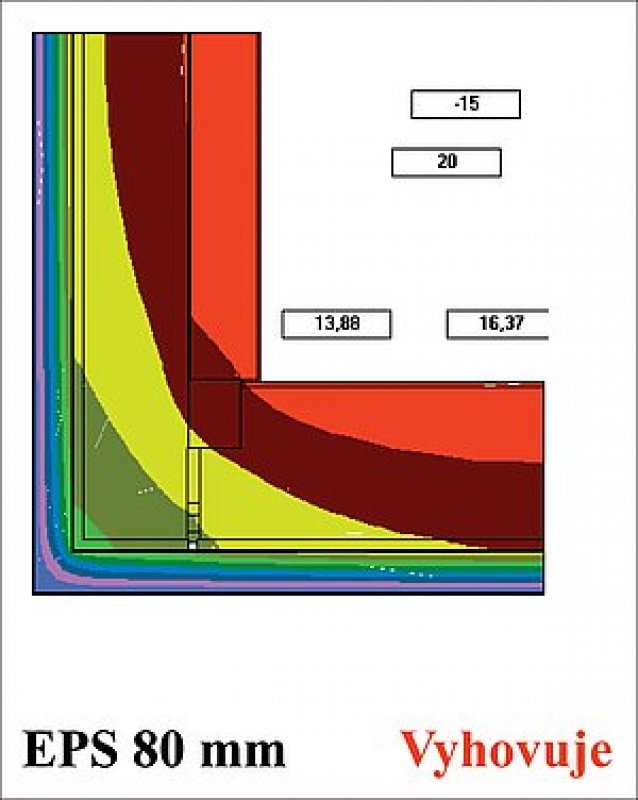 Při působení teploty vzduchu θai = 20 °C a relativní vlhkosti vzduchu v místnosti rhi = 50 % je minimální požadovaná povrchová teplota zvýšená o bezpečnostní přirážku θsi,80 = 12,6 + 0,5 = 13,1 °C (viz obr. 2a, 2b).