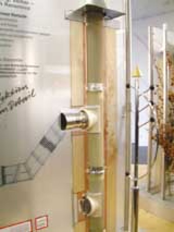 Expozice firmy Schiedel patřila na veletrhu k jedné z nejlákavějších. Vedle vystavovaných výrobků, jejichž technická úroveň korespondovala s pověstí firmy jako předního nebo dokonce vedoucího výrobce v oblasti komínových systémů, výrobků a prvků v rámci Rakouska a Evropy, nechyběl ani symbolický čáp na komíně a přírodní či lesní motivy, do nichž byly exponáty vkusně aranžovány.