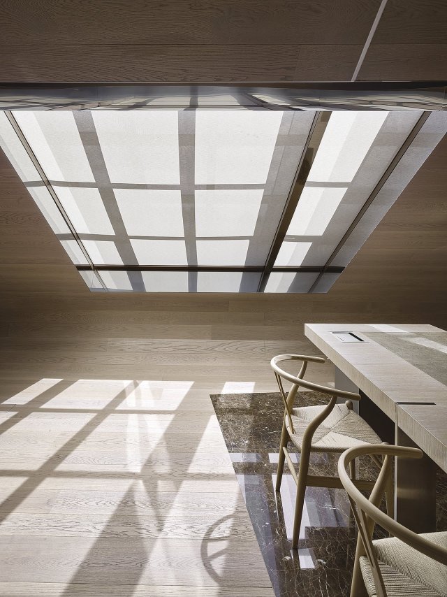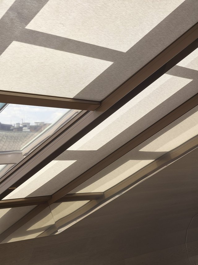 Pokud je prostor, který si přejete zastínit, dekorován v čistém, až minimalistickém stylu, zřejmě vás zaujme design prvku X-SKY, což je vnitřní stropní roleta tvořená takzvanou screenovou látkou. Sestává z materiálu s příměsí skelného vlákna, který se vyznačuje vynikajícími technickými vlastnostmi. Díky tomu je maximálně omezen průnik jak světelné, tak tepelné energie. Látka je uchycena zipy, a roleta proto nad hlavami uživatelů fakticky pojíždí. Zipy a plynové vzpěry umístěné v profilech vodicích lišt umožňují účinné dopínání látky, a dokonce i úplné zatemnění prostor. Tento systém je dostupný ve třech velikostech boxů: 89, 103 a 131 milimetrů. Montáž dvou menších velikostí je prováděna do ostění, zatímco největší box o rozměru 131 milimetrů lze instalovat i na otvor. Ovládání je motorické.