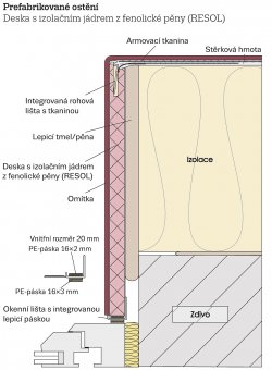 V této souvislosti stojí za pozornost, že právě společnost HPI-CZ má v sortimentu i izolace z fenolické pěny s hodnotou lambda 0,022 W/(mK), které lze, spolu s prefabrikovaným ostěním z téhož materiálu, použít. Hloubka zapuštění okenního rámu do izolace ostění, vzduchotěsnost tohoto zapuštění a také tepelněizolační účinnost této izolace mají přímý a výrazný vliv na povrchovou teplotu na vnitřní straně ostění.