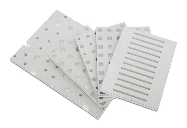 V konstrukcích podhledů zejména u veřejnoprávních a administrativních budov se velmi často používají speciální akustické děrované desky Knauf Cleaneo. Díky svému děrování tato sádrokartonová deska neodráží hluk zpět do místnosti, ale velmi dobře ho pohlcuje. Děrované desky tedy nejenom dobře vypadají, ale přispívají ke srozumitelnosti řeči či hudby ve školách, restauracích, ale také v nákupních centrech. Deska Cleaneo je nabízena v několika variantách s různým děrováním. Přidanou hodnotou této desky je také schopnost automatického čištění okolního vzduchu. V konstrukci desky je přidána složka Zeolith, která katalyticky rozkládá škodlivé látky obsažené ve vzduchu na vodu, a oxid uhličitý. Pro ideální působení tzv. Cleaneo efektu je třeba počítat s minimálně 0,3 m2 děrovaných desek na 1 m3 vzduchu.