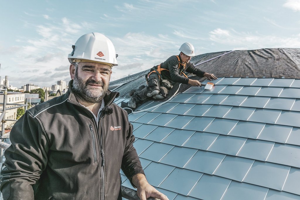 Pohled na Technologické centrum na okraji Paříže je opravdu mimořádný. Novátorsky řešená budova se stříbrným opláštěním je všechno možné, jen ne všední. Stavba byla výzvou. „Předem jsme museli provést řadu propočtů, aby všechny části a všechny čtyři strany budovy na sebe přesně navazovaly. Protože jsou stěny zaoblené, muselo všechno perfektně lícovat, aby ve výsledku vznikl harmonický celek,” vysvětluje Ronan Lelievre, stavbyvedoucí firmy Raimond, specializující se na střešní a fasádní systémy.