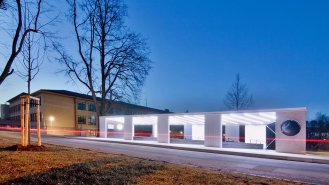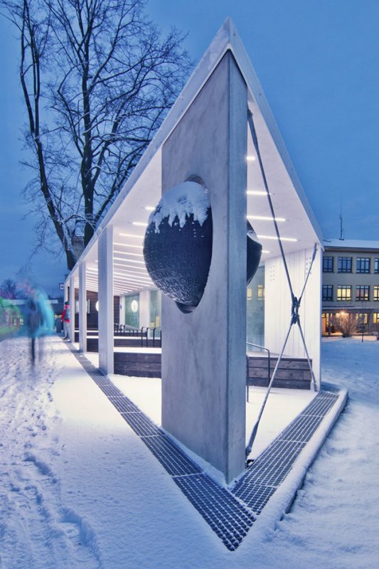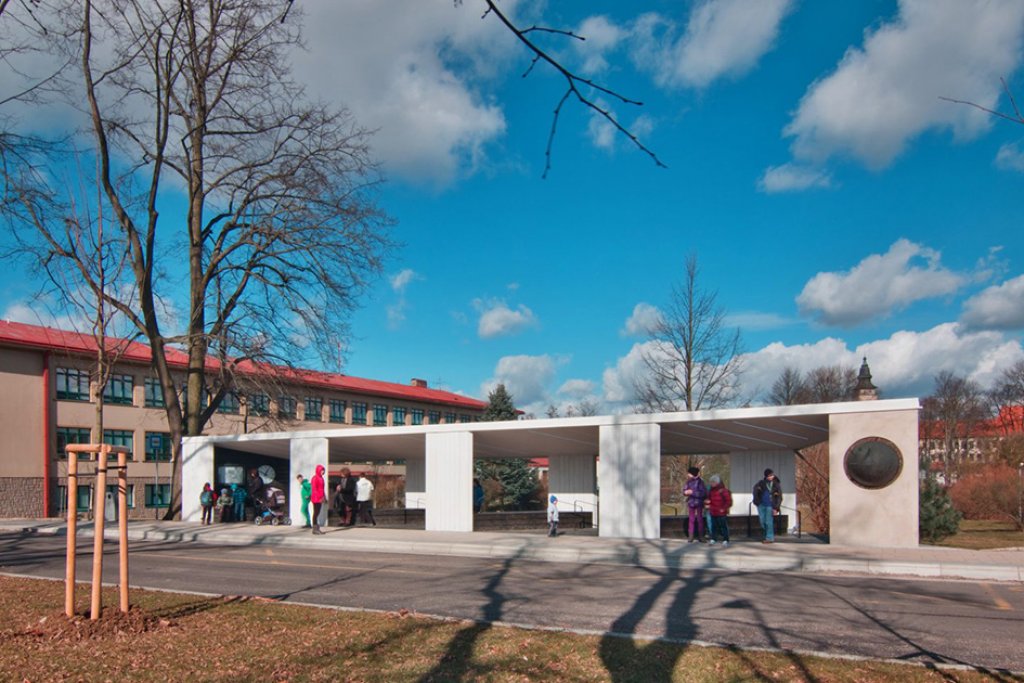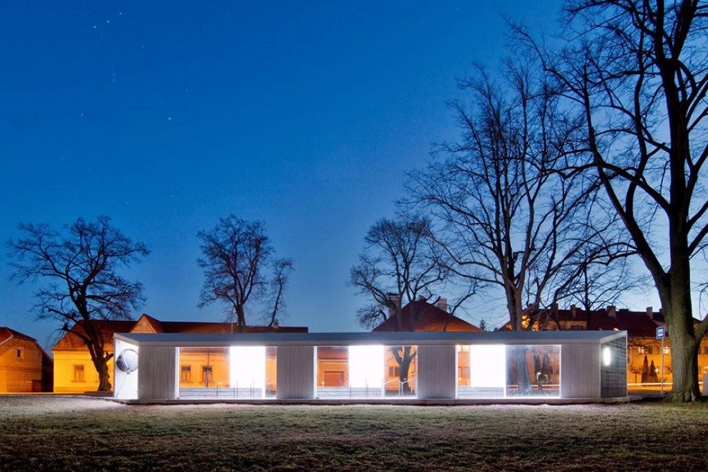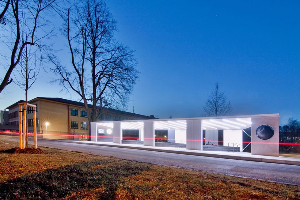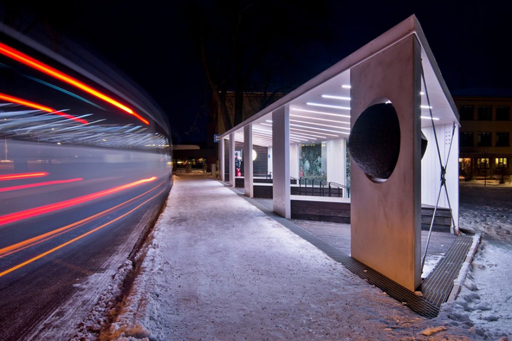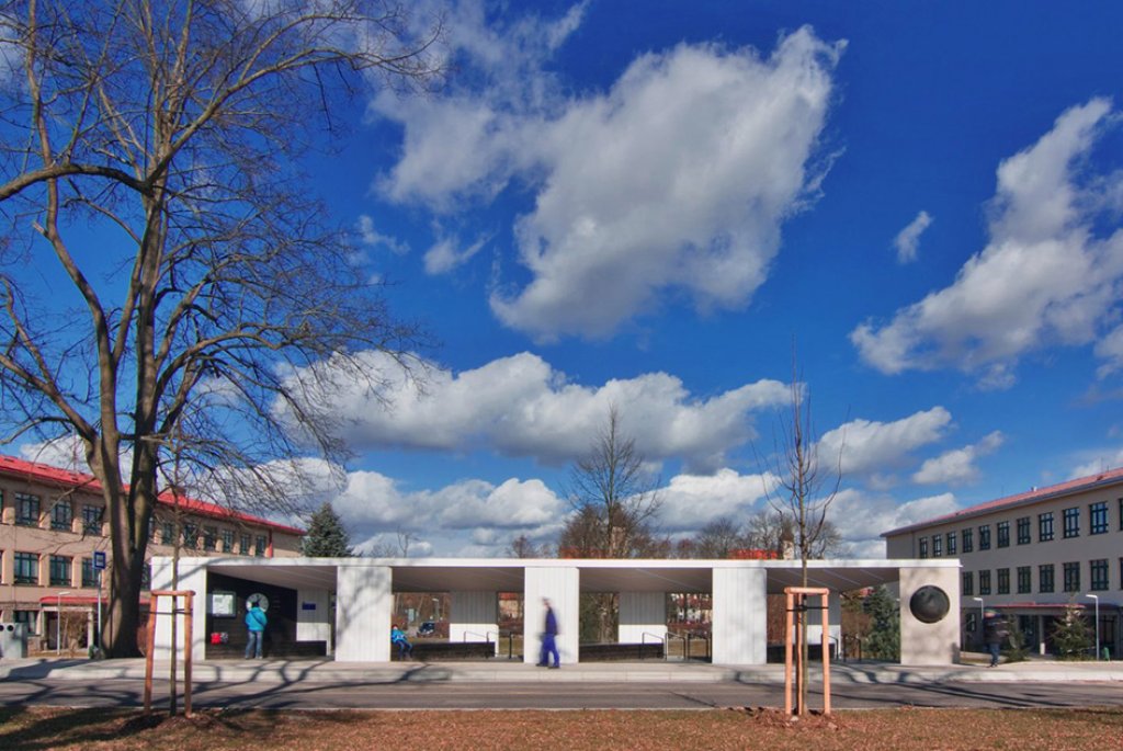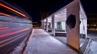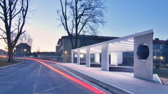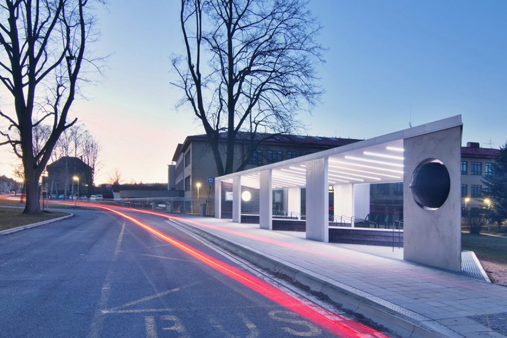 Jedno město, stovky cestujících, jeden přístřešek - objekt zářící, o čase informující a před deštěm, větrem, sněhem a sluncem nejen cestující, ale i historii chránící.