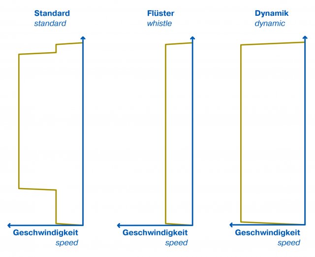 Lidé s citlivým sluchem mohou hlasitost snížit dokonce ještě více – jednoduše omezením rychlosti pohonu. Neboť v tom je síla tohoto nově vyvinutého výrobku: provozní režim lze pohodlně a jednoduše – pouhým ručním povelem – změnit kdykoli podle konkrétní situace. Na výběr je přitom ze tří variant: tichá, dynamická a „standard“. „Pokud pohon jede v režimu standard, rozjíždí se pomalu a potom zrychluje až do dosažení maximální rychlosti. Potom se rychlost sníží a roleta dojede do koncové polohy,“ vysvětluje Peter Graben, produktový manažer firmy Becker. Uživatelé díky těmto možnostem nastavení profitují z extrémní flexibility.