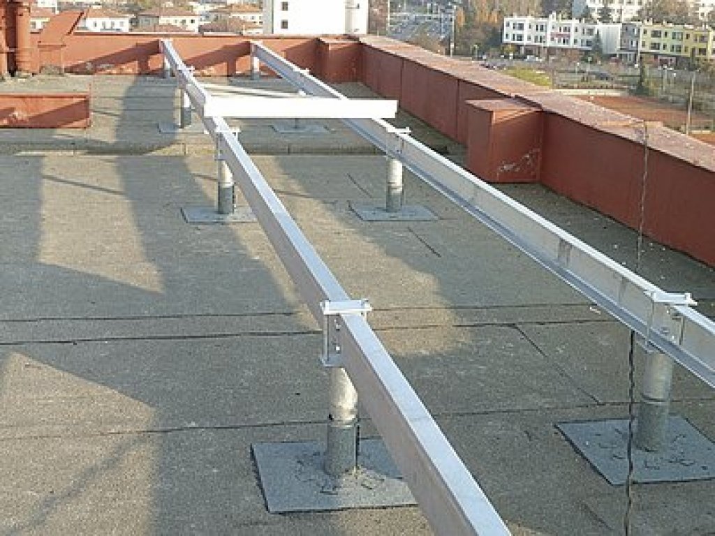 Pro uchycení solárního systému do střechy objektu byla statikem navržena ocelová nosná konstrukce kotvená do železobetonového střešního panelu tloušťky 250 mm. Aby nebyl vytvořen tepelný most v místě kotvení do střešního pláště, byly pod ocelové nosné stojky osazeny desky z pěnového skla s pevností v tlaku 1,6 MPa a součinitelem tepelné vodivosti λ = 0,054 W/(m.K).